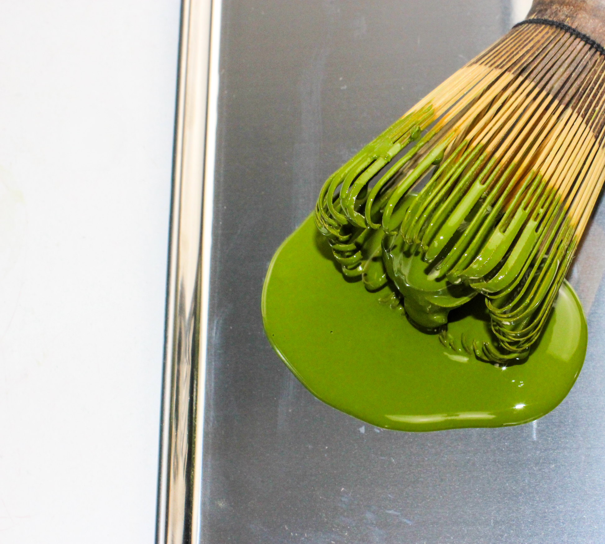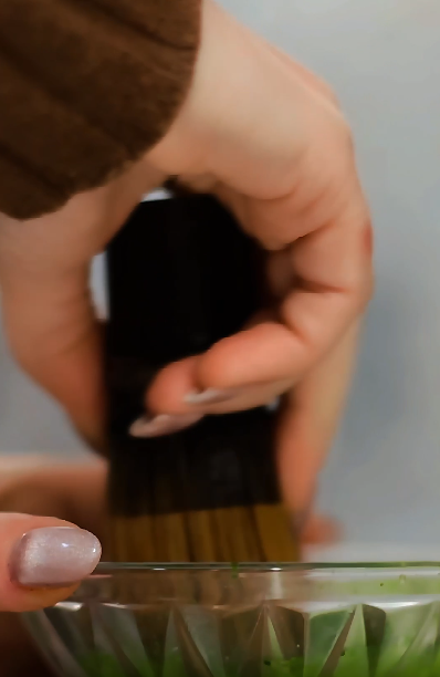 Tamiser 1 à 2 g de matcha (doser avec notre cuillière à matcha Chasaku)